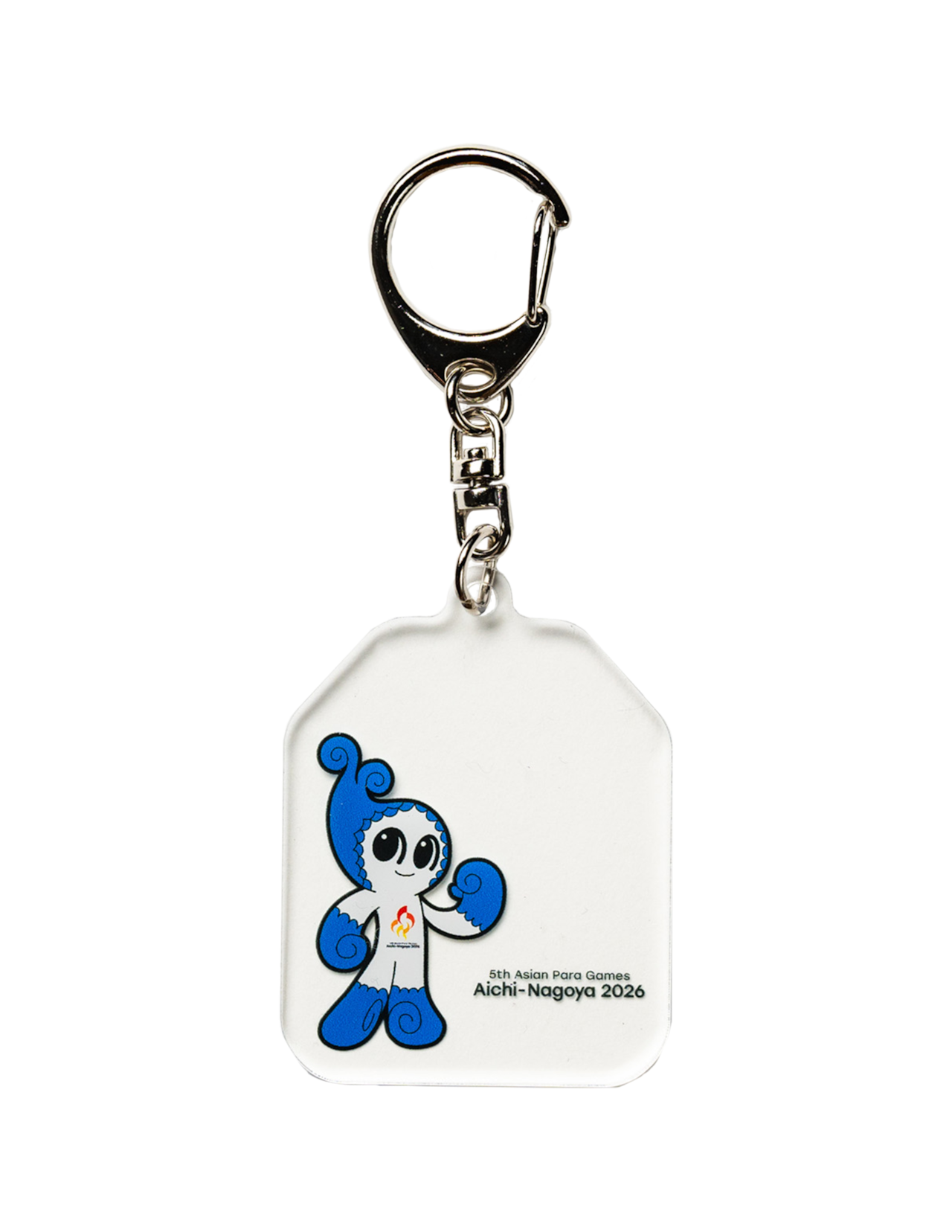 アジアパラ競技大会公式マスコット「ウズミン」が施されたアクリルキーリング。